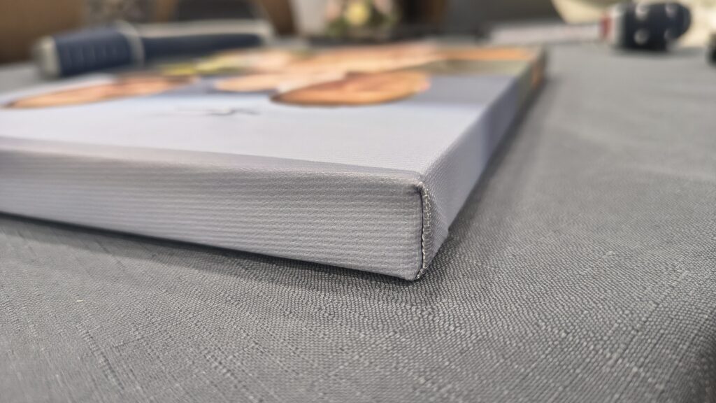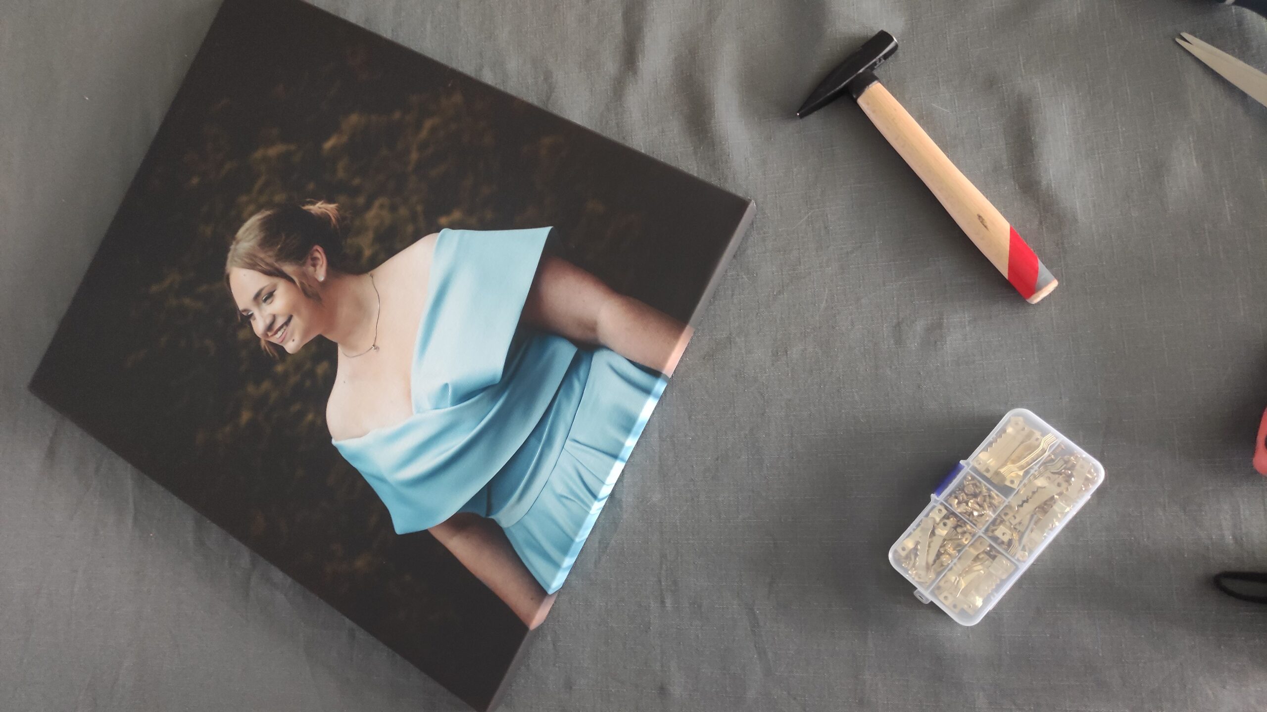 Surenkant fotodrobes naudojame tikrus, tapybai skirtus medinius porėmius ir kokybiškiausią Canon Portrait Canvas 320 g drobę. Specialios formos porėmio profilis gaminamas iš tinkamos drėgmės Lietuviškos pušies medienos. Tam, kad drobė būtų tinkamai įtempta, naudojami porėmiai yra pakalami.